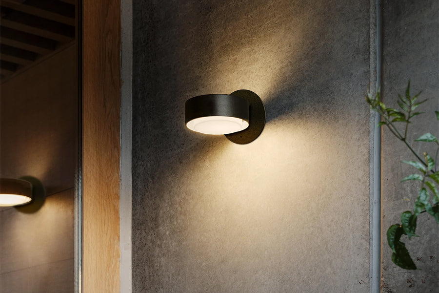 A good design is one that endures. So it is with Plaff-on!, a lamp that has been illuminating walls and ceilings for almost ten years. Its hand-blown white glass diffuser appears to float, detaching from the ceiling and the circumference that surrounds it, and its light filters upward to create a luminous halo. It exudes simplicity and it’s very useful, so much so that there was a striking need to have this kind of lamp for exteriors as well. The Plaff-on! outdoor collection offer the same features as the indoor version but suitable for wet locations, making it perfect for bathrooms as well. With the idea of expanding possibilities for the outdoors, this year the new Plaff-on! collection comes in two new sizes —13 and 20 inches in diameter —. Furthermore, the smallest version can be fitted with a signage accessory atop the shade if necessary. Indoors, outdoors, with or without signage, the Plaff-on! now offers multiple options in one lamp that can now conquer the outdoors as well.