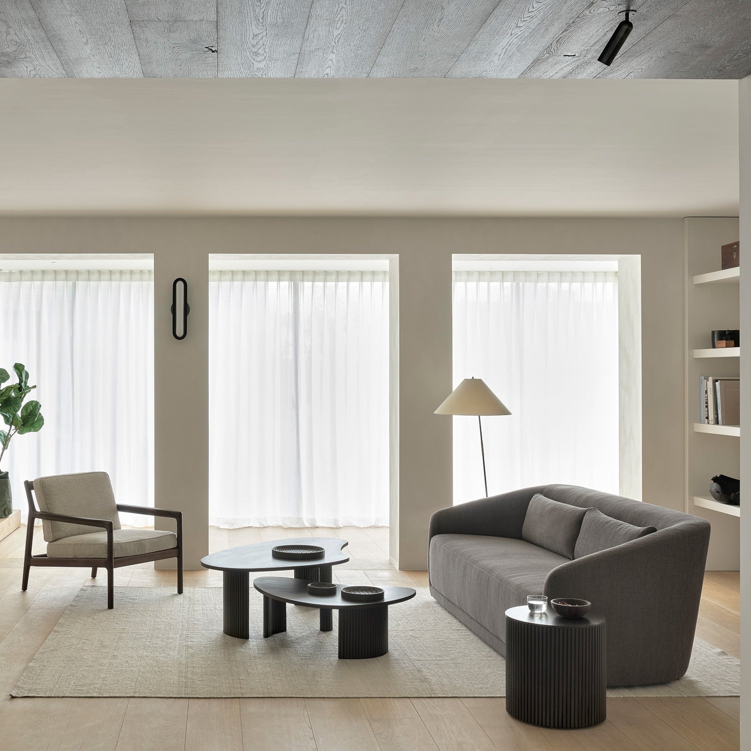 Encapsulated in its stacked wood-stick effect, the tabletop can be easily removed to hide the newspapers, toys, cushions and throws from daily life.
