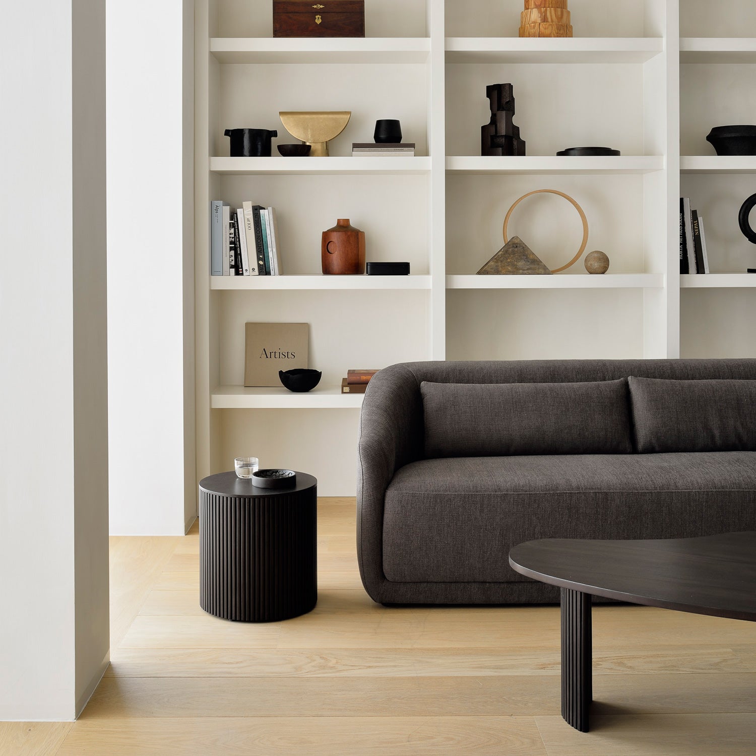 Designed by Jacques Deneef, the Roller Max is a clever multifunctional item that combines a side table with storage. Encapsulated in its stacked wood-stick effect, the tabletop can be easily removed to hide the newspapers, toys, cushions and throws from daily life. The perfect solution for smaller living.