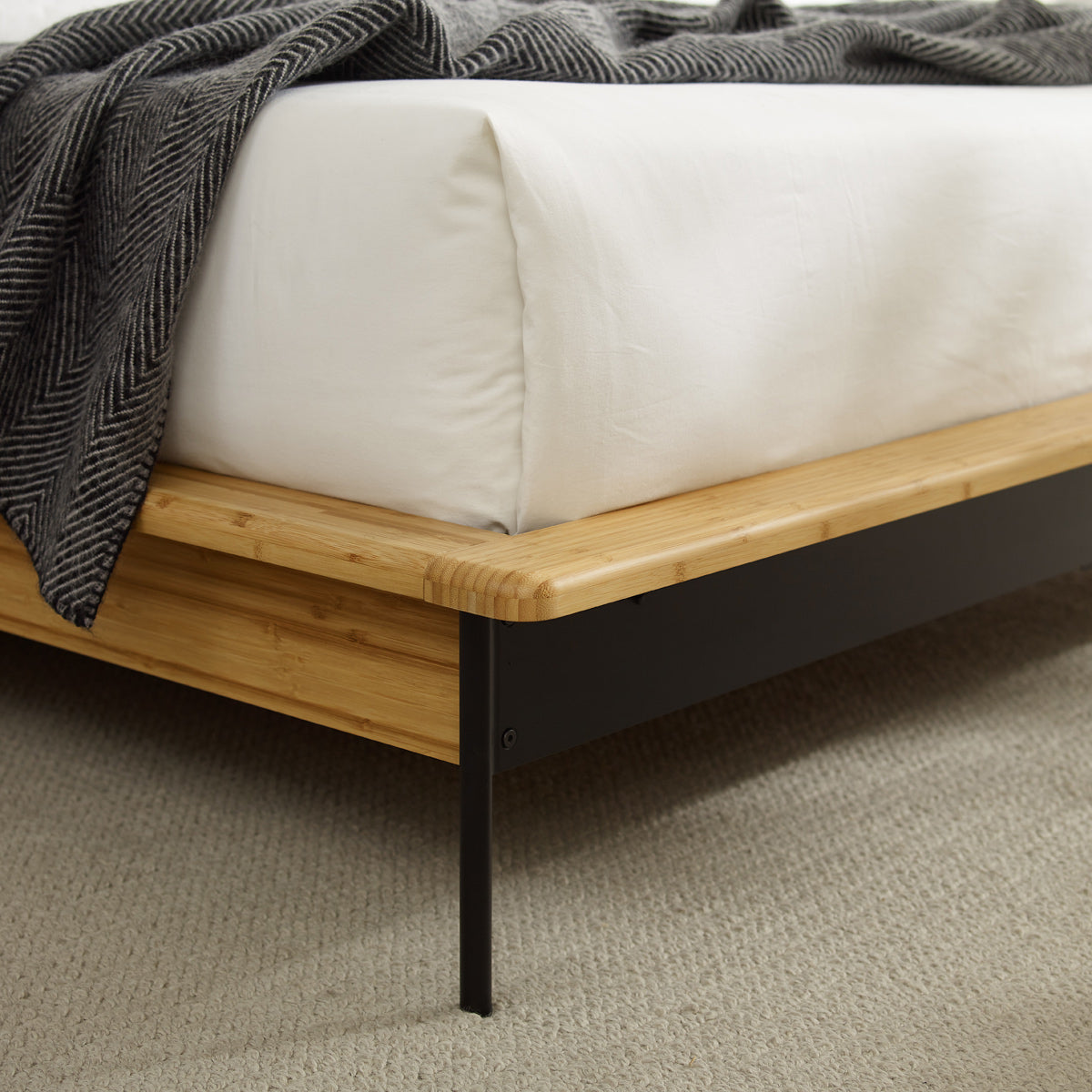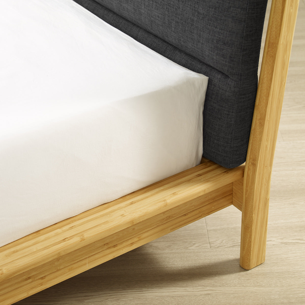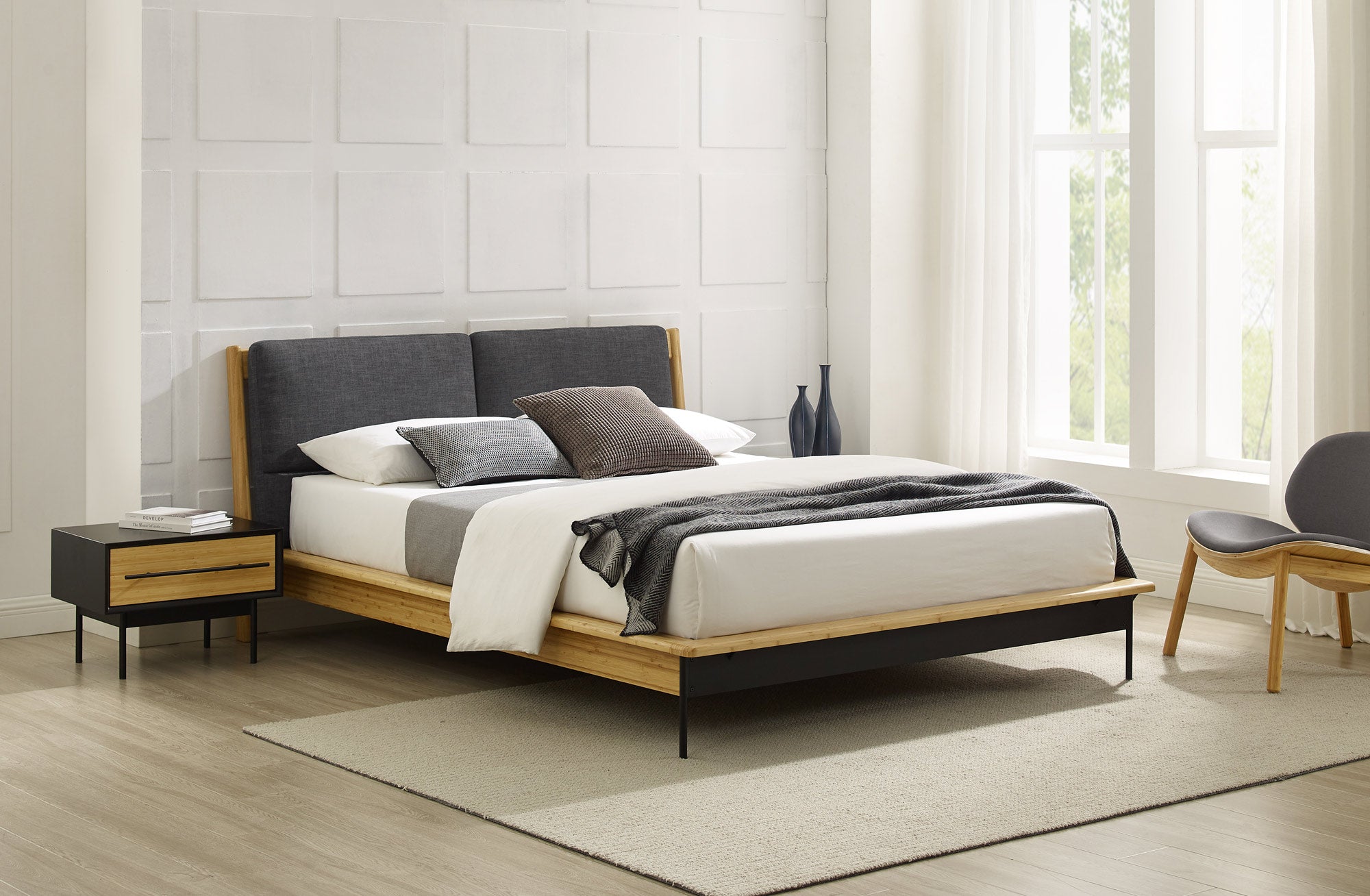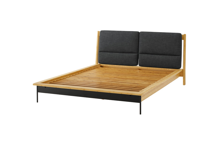 Create a casual and sophisticated look with Greenington’s Santa Cruz Queen bed. The sleek modern design and simple clean lines of the Santa Cruz platform bed features a craftsman-built frame in solid Wheat bamboo, with two removable back cushions adding a dramatic focal point to the headboard, angled for good looks and comfortable lounging in bed. Heightening Santa Cruz’s upscale style is a slim black steel support and legs accenting the solid Wheat bamboo side rails and footboard. Environmentally safe, Wheat is not a surface stain, the color is the result of an innovative caramelization process using heat, steam, and pressure to transform the solid bamboo material into Wheat’s light color. The Santa Cruz platform bed is designed for use with a mattress only, which is supported with a solid bamboo European slat system, eliminating the need for a box spring, and providing constant ventilation for your mattress. Available in Queen, Eastern King, and California King sizes. Discover the expert craftsmanship packed into each piece of Greenington bamboo furniture, made using a renewable resource harvested from fully sustainable and rapidly growing forests.
