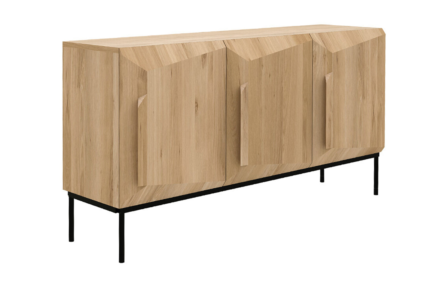 An angular composition forms the heart of a design that aims to distance itself from static and immobile surfaces. A unique sense of volume is created which alters your perception of the sideboard as you walk by.