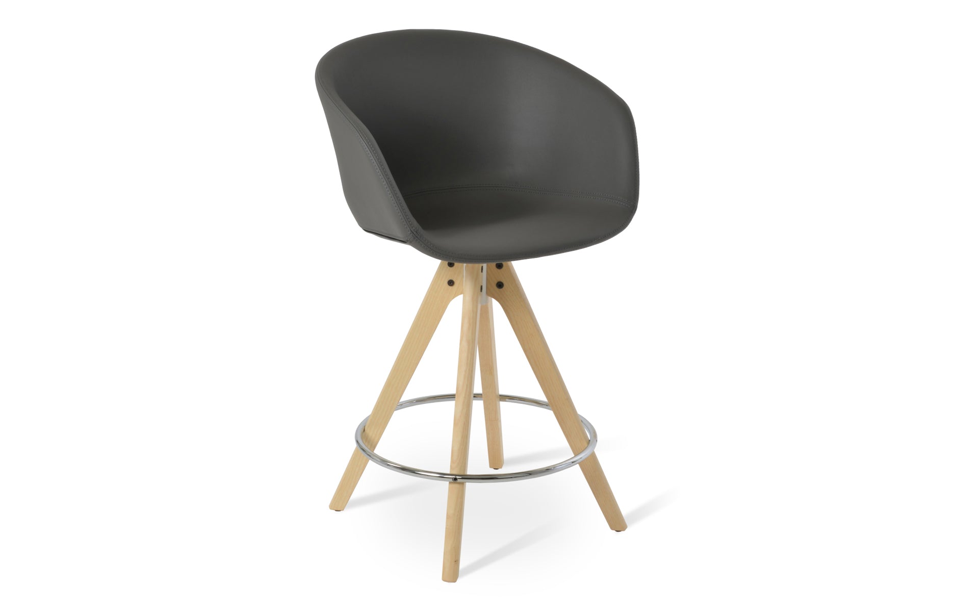 Tribeca Pyramid is a contemporary stool with a comfortable upholstered seat and backrest on swivel wood legs. The seat has a steel structure with βSβ shape springs for extra flexibility and strength. This steel frame molded by injecting polyurethane foam. Tribeca seat is upholstered with a removable zipper enclosed leather, PPM, leatherette or wool fabric slip cover. This contemporary chair is suitable for both residential and commercial use. Tribeca Pyramid Stool is designed by Tayfur Ozkaynak.