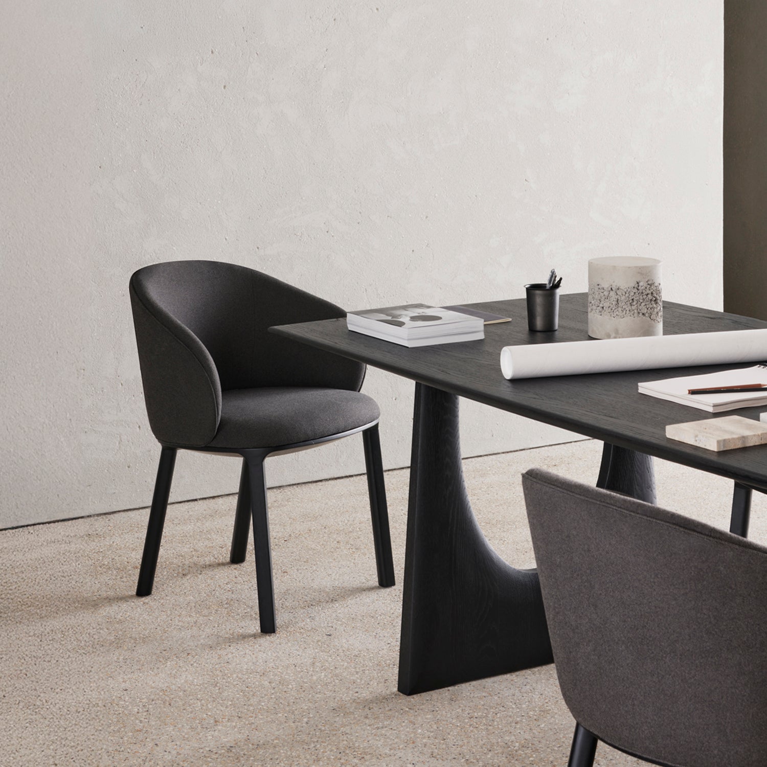Experience dining comfort like never before with the Unda. Defined by its blend of materials, fluid lines and crafted piping trace the contours of the upholstered shell. Designed by Studio Segers, known for their pure and honest approach, every detail—down to the uniquely shaped legs—reflects sophistication.