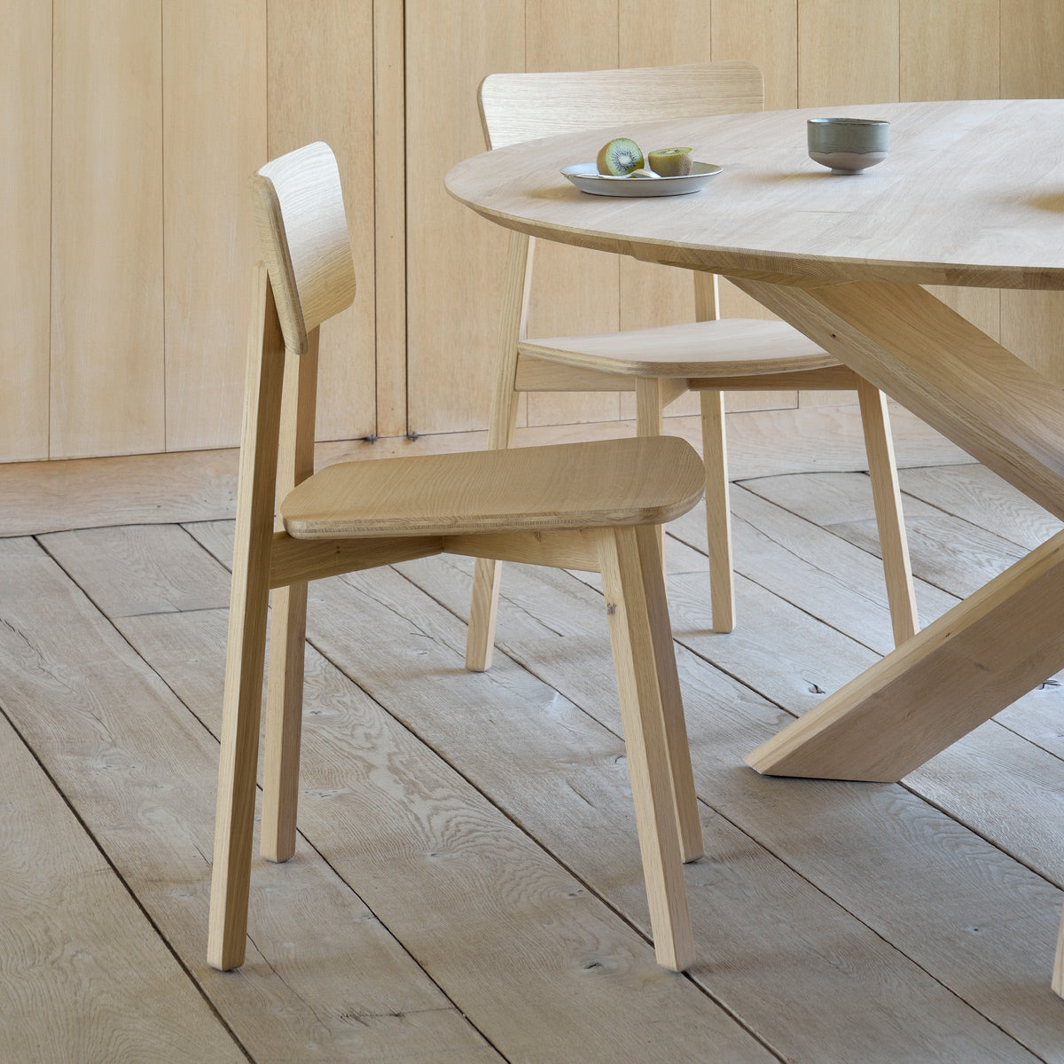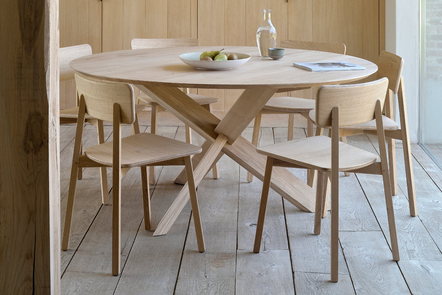 Our Circle solid oak dining table is all about inspiring your family to spend a little more time at the table, its solid legs intertwining in perfect balance.
