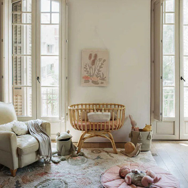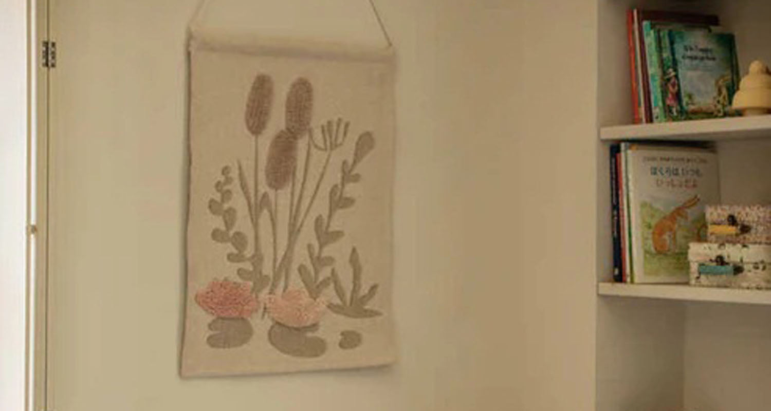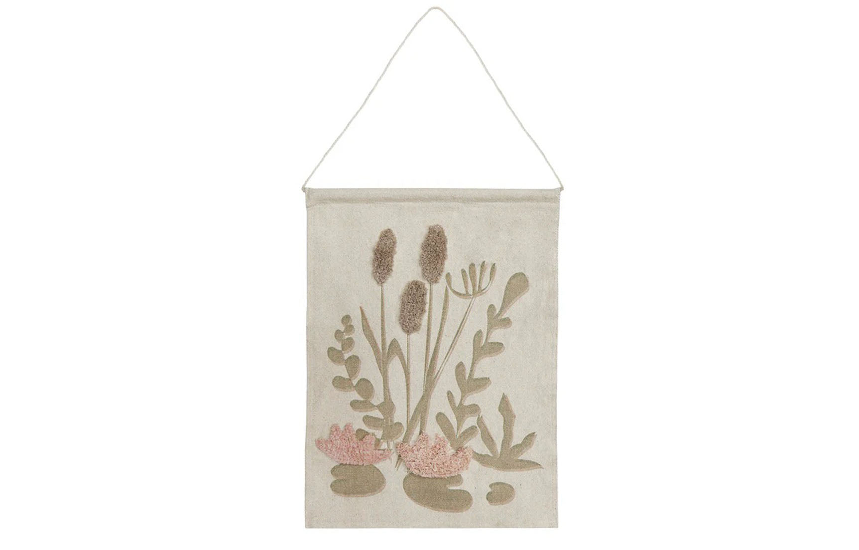 A reflection in the water printed on cotton canvas. As a cut-out of our magic pond, this decorative wall hanger depicts water lilies and cattails that seem to want to pop out of the canvas. Combine it with other items from our Fantasy Garden collection and turn the kids' room into a magic pond.