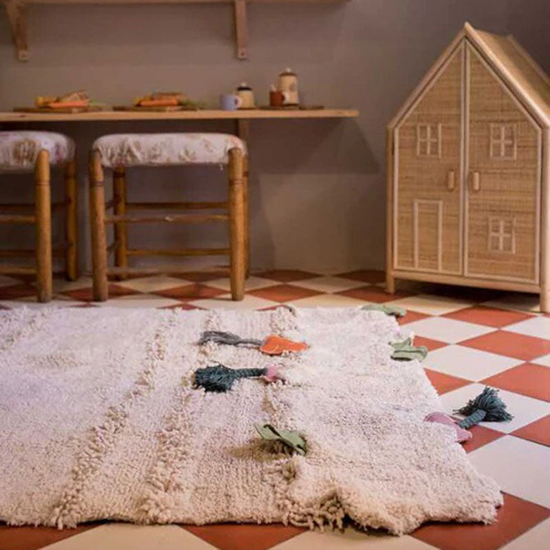 The iconic Oli&Carol 'Ramona the Radish' teether first turned into a DIY and now into a rug! Like many of its eco-toys, this adorable washable cotton rug aims at encouraging healthy habits in kids from a young age under the motto 'Cool Kids Eat Healthy.' Discover our Oli&Carol x Lorena Canals collection and you'll find the kids playing gardening from the comfort of their rooms while avoiding all the mess!